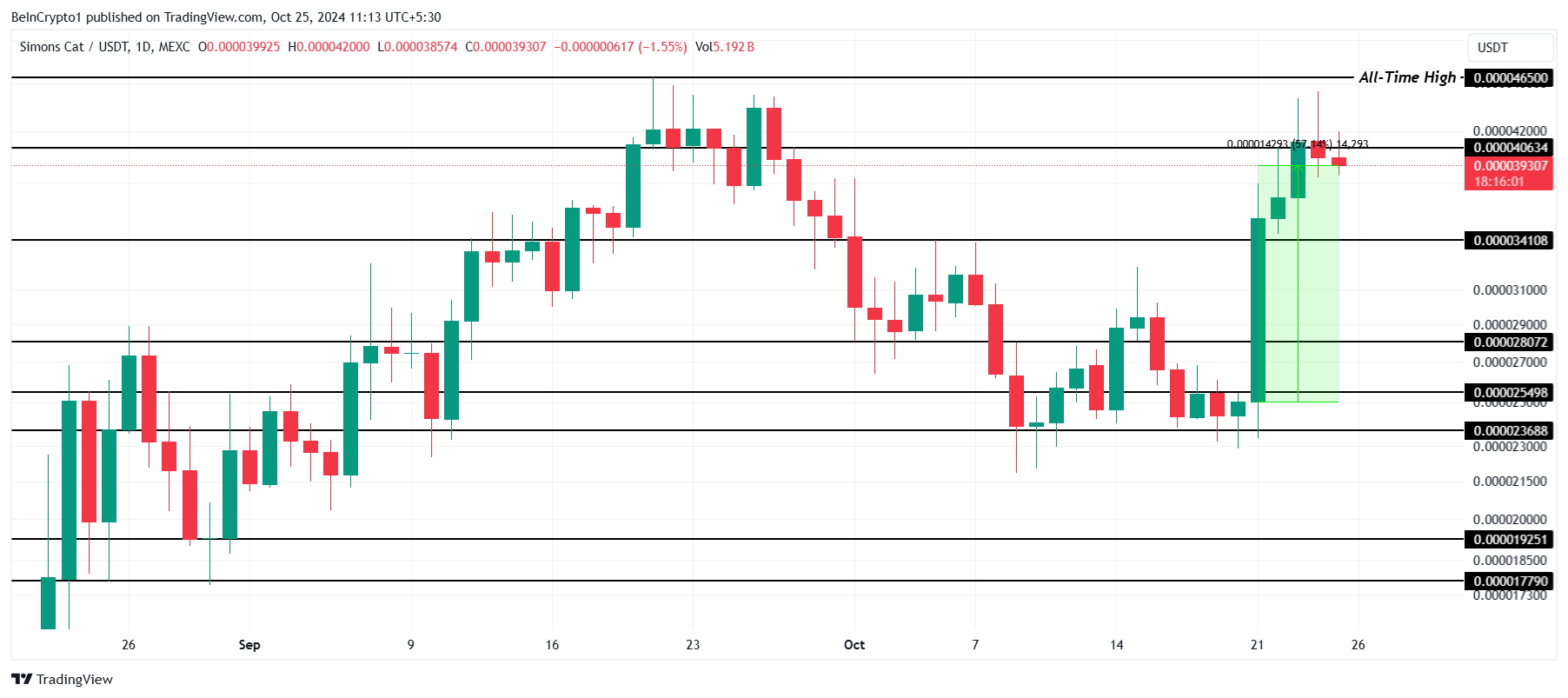 Z drugiej strony, jeśli CAT nie zdoła ustabilizować 0,00004063 USD jako wsparcia, możliwy jest spadek do 0,00003410 USD. Taki ruch cenowy szybko zamieniłby ostatnie zyski w straty, potencjalnie wpływając na nastroje inwestorów.