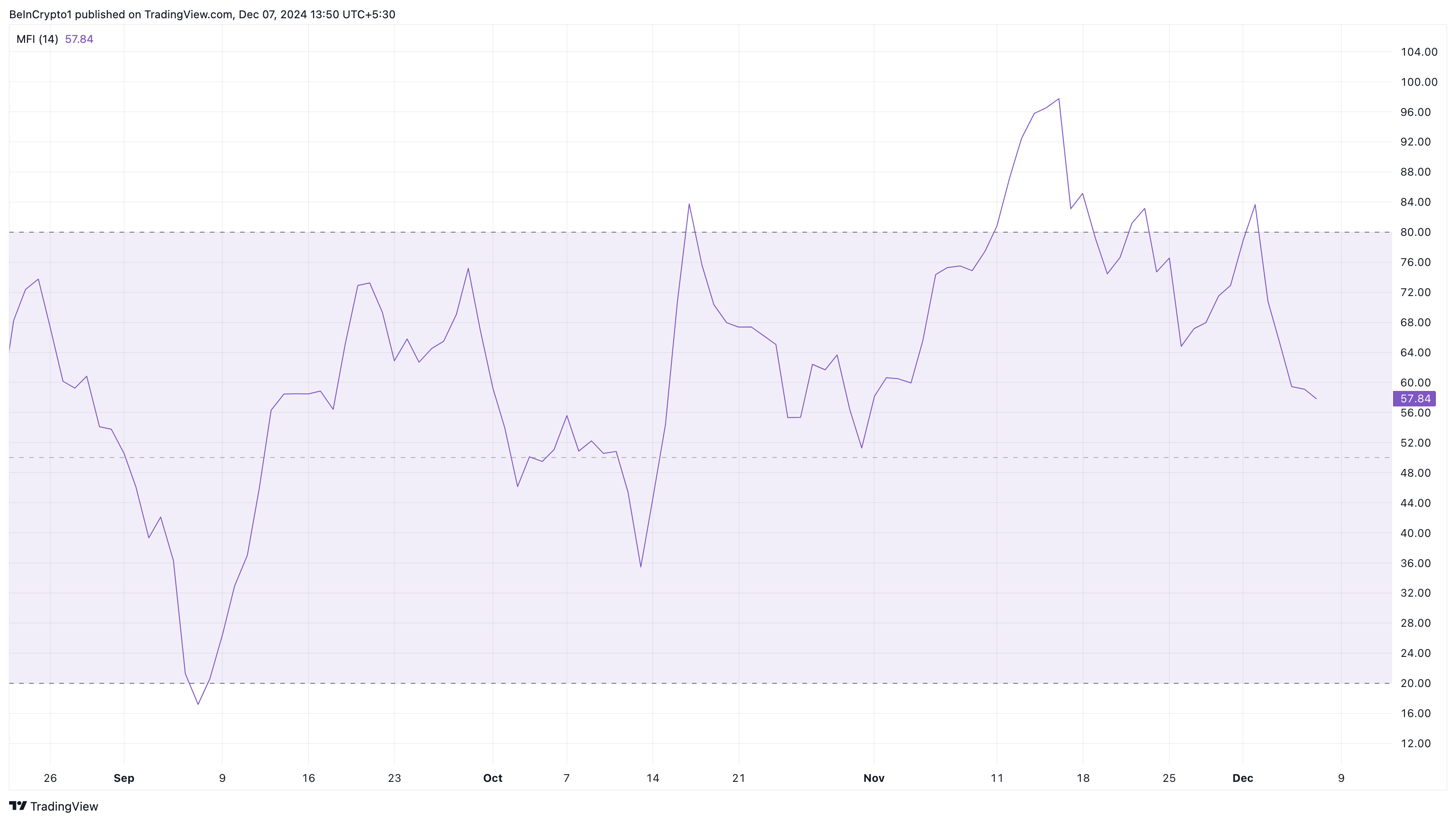 Poza tym, wskaźnik przepływu pieniędzy (MFI) na wykresie dziennym wydaje się wspierać tę tezę. MFI to oscylator techniczny, który wykorzystuje cenę i wolumen do mierzenia presji kupna i sprzedaży.