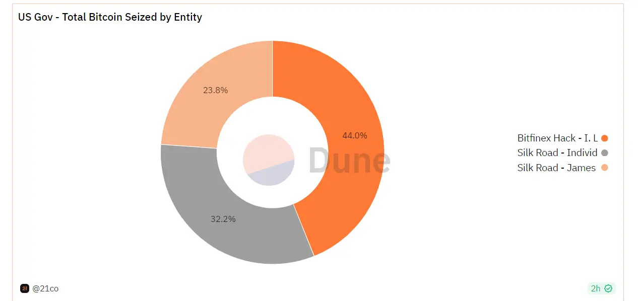 Odpowiednimi statystykami podzielili się analitycy z firmy 21.co. Chociaż w rzeczywistości ilość BTC posiadanych przez rząd USA może być wyższa. To dlatego, że rksperci wyciągnęli wnioski jedynie na podstawie publicznie dostępnych źródeł informacji.