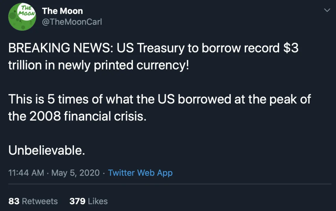 SponsoredJak ostatnio napisał The Moon (@TheMoonCarl) na Twitterze, to ponad pięć razy więcej niż USA pożyczyło w szczycie kryzysu finansowego w 2008 roku.