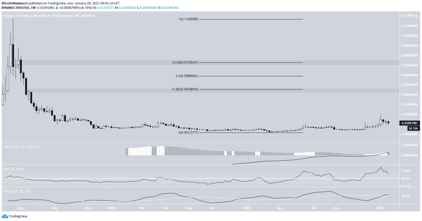 6 stycznia 2021 r. XVG przesunął się powyżej obszaru oporu na 0,0095 USD. Opór ten istniał od czerwca 2020 roku.