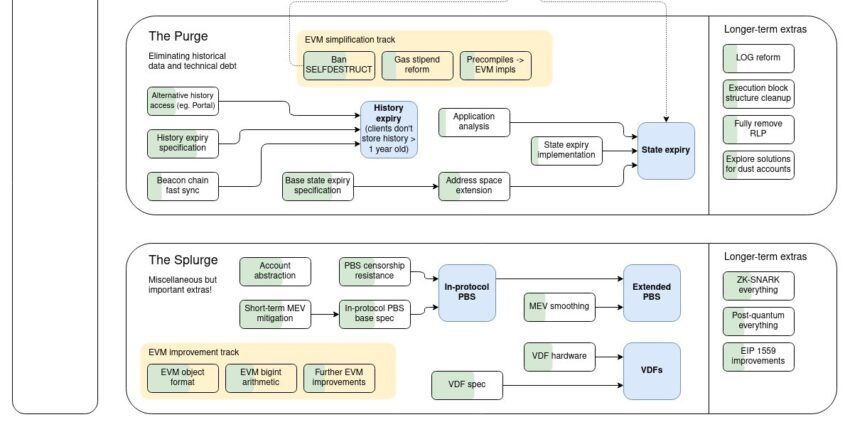 Zgodnie z mapą drogową Buterina, po fuzji, Ethereum skupi się na skalowalności poprzez Sharding. Następnie wprowadzi dodatkowe ulepszenia poprzez The Verge i The Purge. Kroki te poprawią walidację i zmniejszą obciążenie węzłów danymi.