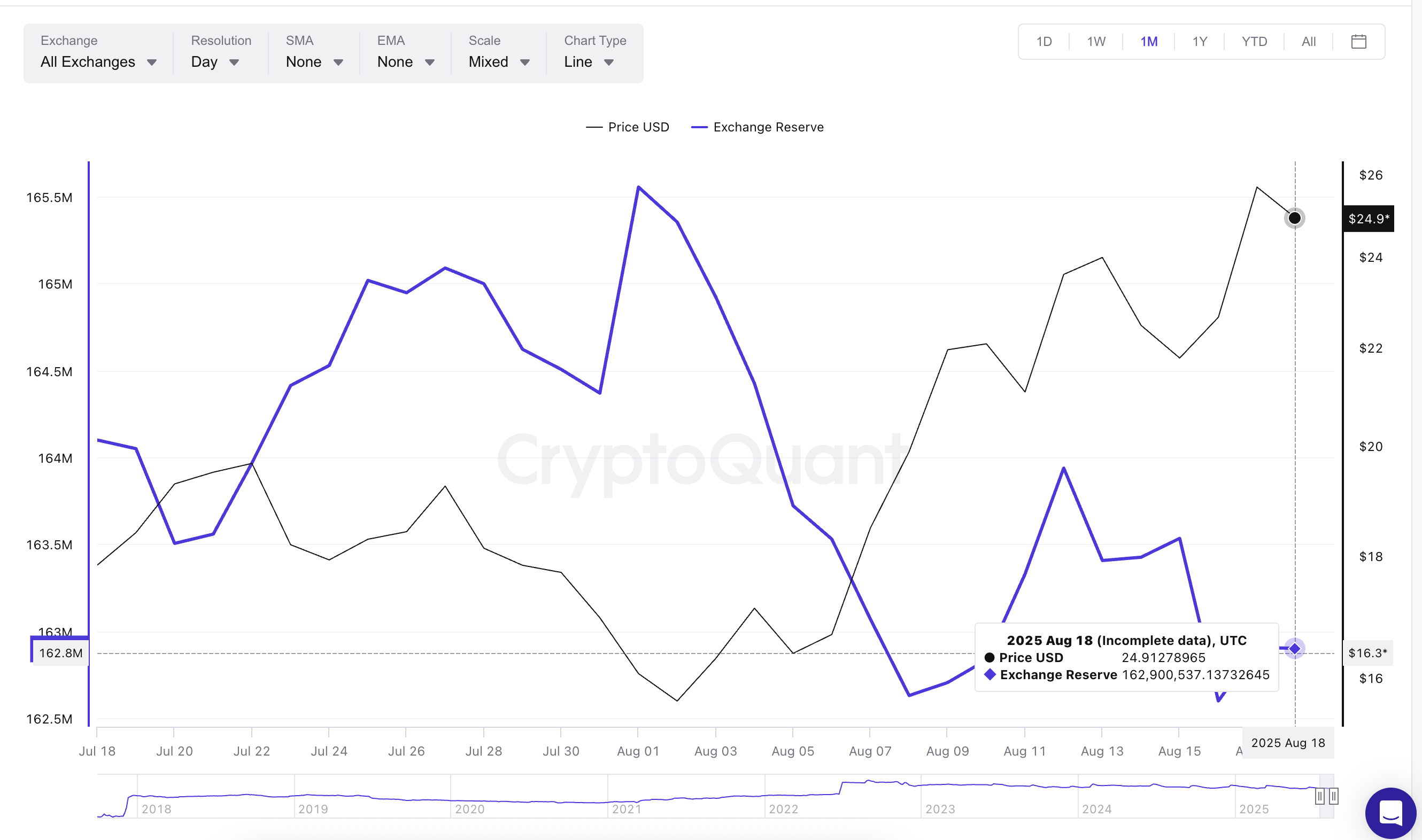 Mimo tego silnego wsparcia wielorybów, jeden wskaźnik sugeruje, że cena Chainlink może się ochłodzić w krótkim terminie. Mowa tutaj o rezerwach giełdowych.