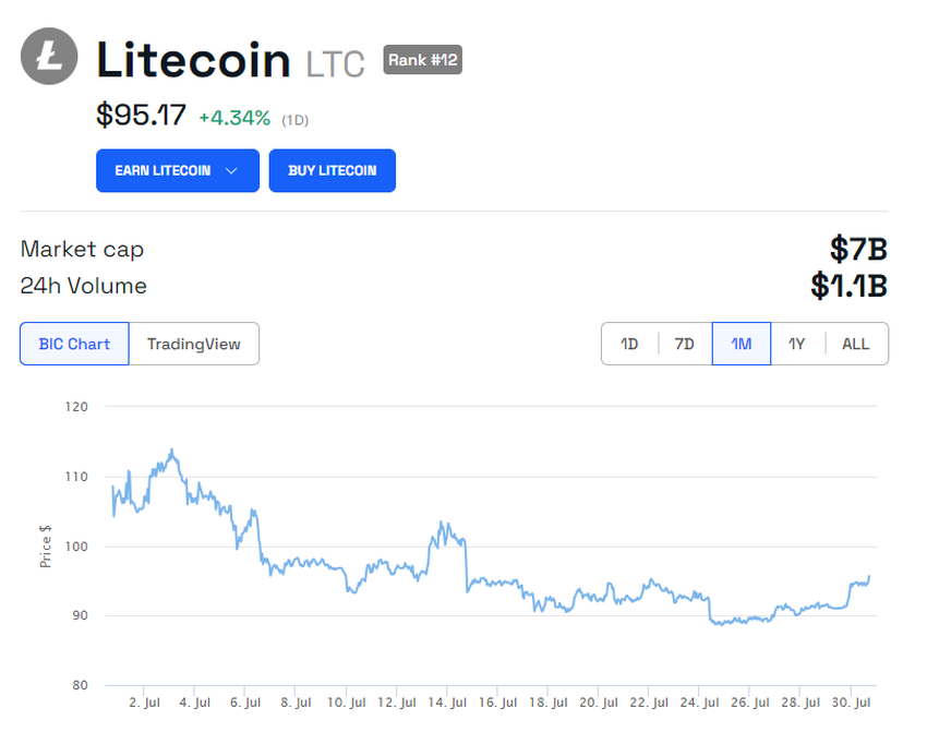 Wraz ze zbliżającym się halvingiem, cena LTC wzrosła o 3,2% w ciągu ostatnich pięciu dni, przechodząc od najniższego poziomu 89 USD odnotowanego 25 lipca do obecnej ceny.