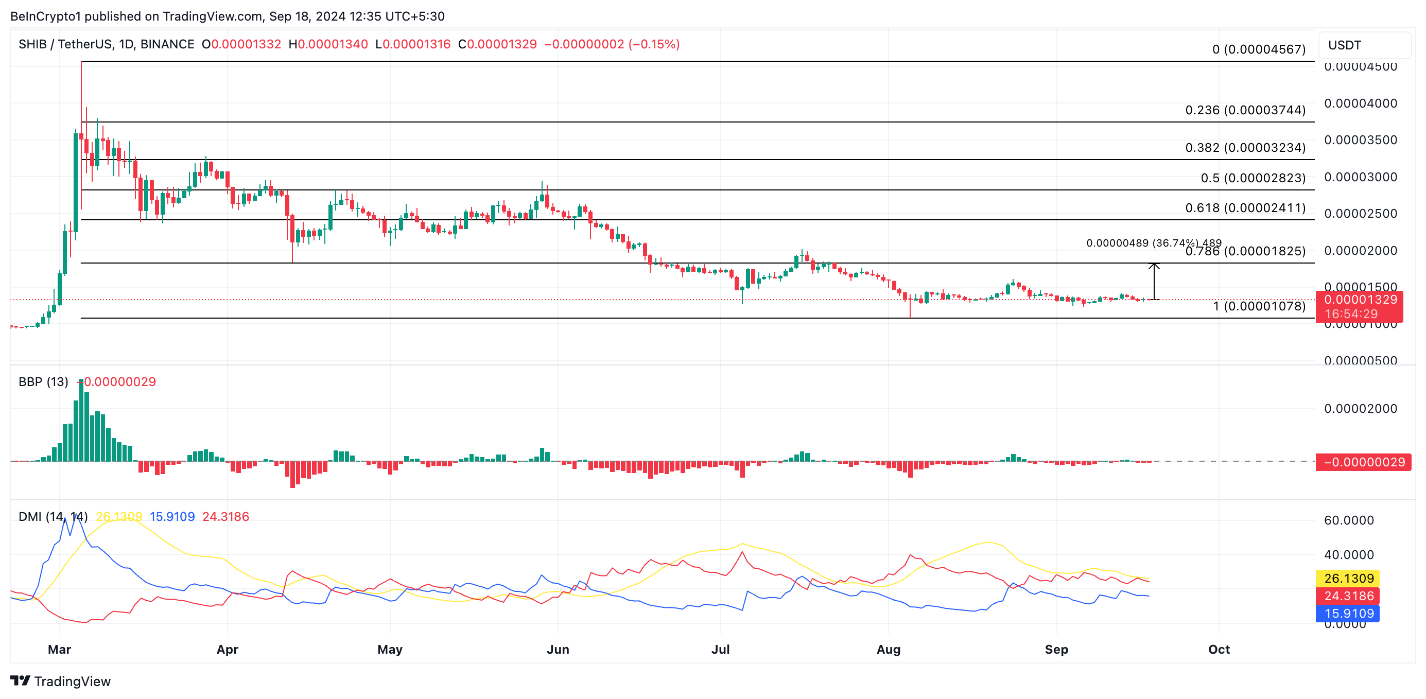 Ten wzrost mógłby nastąpić tylko wtedy, gdy popyt wzrośnie, a cena Shiba Inu zbliży się do poziomu oporu na 0,000018 USD.