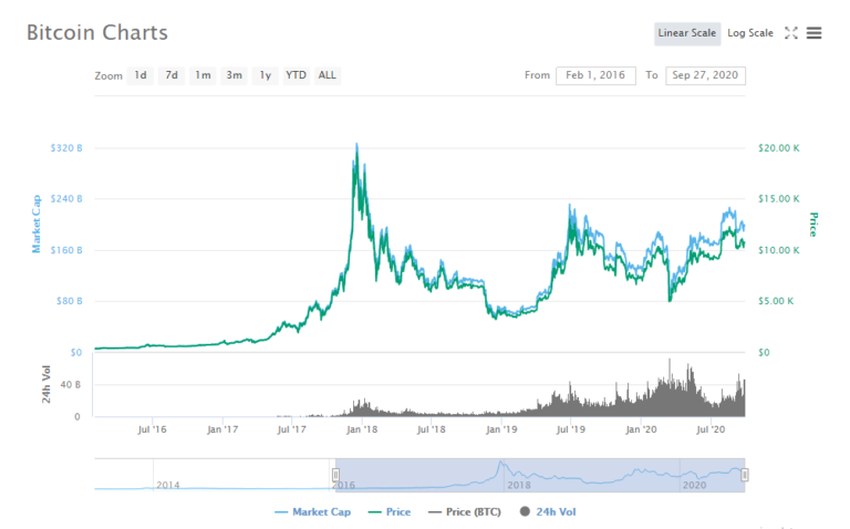 SponsoredPoniższe wykresy ilustrują pozorną korelację między rynkiem akcji a Bitcoinem w okresie pięciu lat: