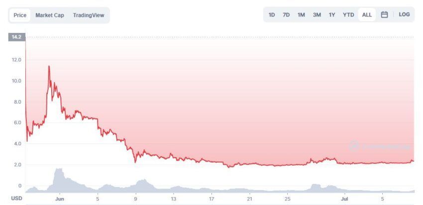 Niestety dla użytkowników, którzy ponieśli straty podczas upadku Terra, nowa kryptowaluta nie cieszyła się popytem. Moneta od ponad miesiąca znajduje się w ruchu bocznym i jest notowana 88,03% poniżej swojej ceny początkowej. Eksperci, z którymi rozmawiał BeInCrypto, uważają, że problem z Terra 2.0 polega na tym, że projekt stracił zaufanie inwestorów.