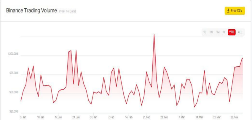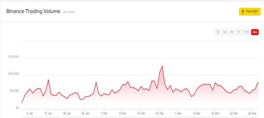 Według Be[In]Crypto Research, wolumen obrotu największej giełdy kryptowalutowej w przestrzeni w pierwszym kwartale tego roku wyniósł około 5,54 biliona dolarów.