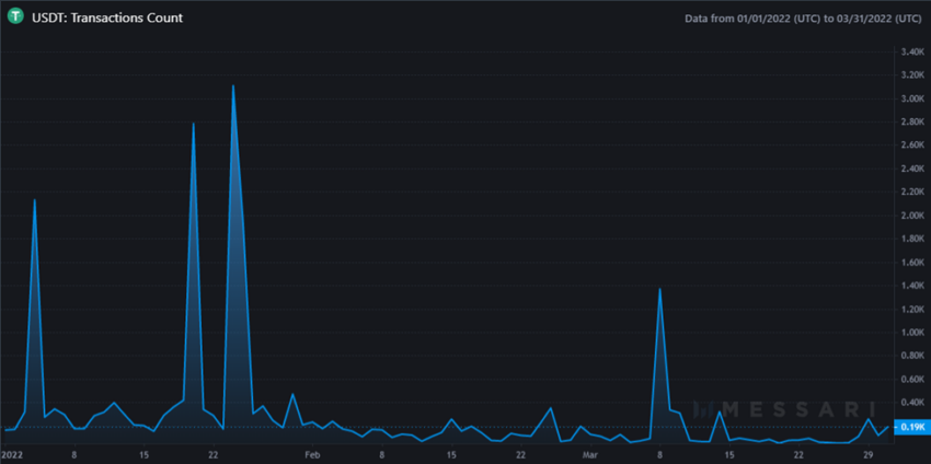 Spadek całkowitej liczby transakcji w pierwszym kwartale 2022 r. można przypisać jako główny powód spadku wolumenu transakcji Tether.