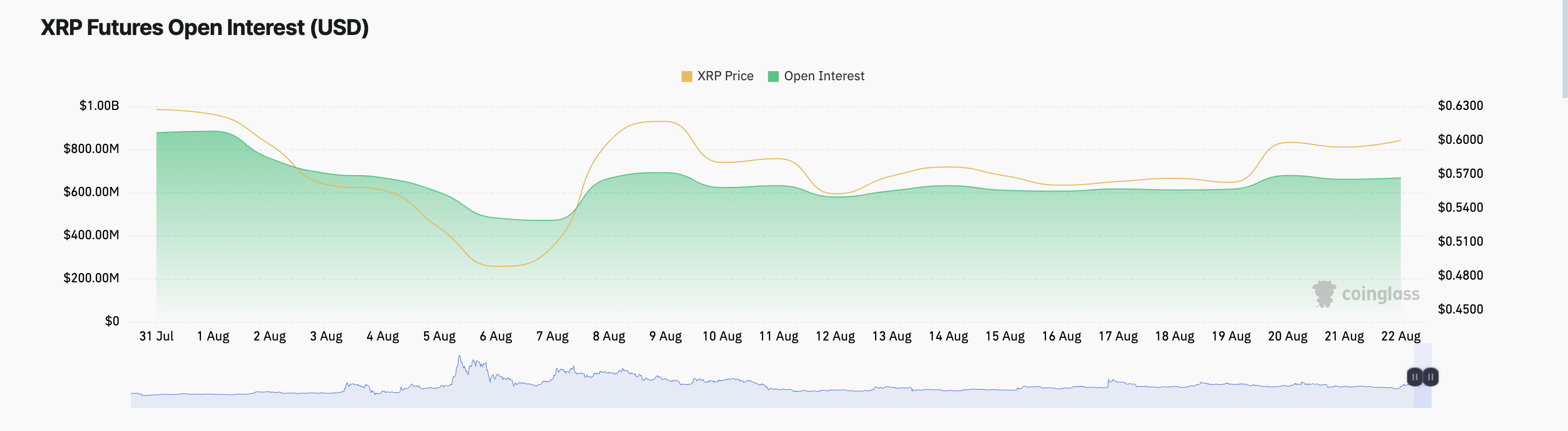 Ponadto, otwarte pozycje na rynkach futures Ripple wzrosły w ciągu ostatnich 24 godzin. Według Coinglass wskaźnik ten obecnie wynosi 667 mln USD.