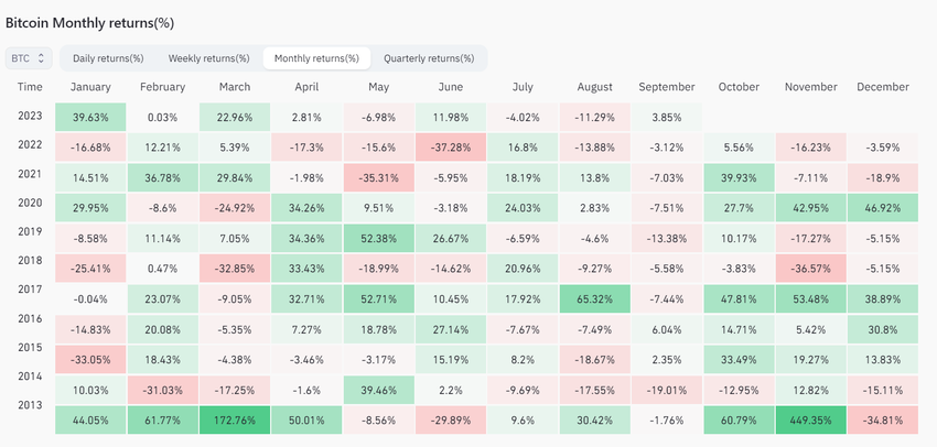 Patrząc w przyszłość, inwestorzy są ostrożnie optymistyczni co do byczego października dla BTC. W przeszłości notowania Bitcoina osiągały dobre wyniki w tym miesiącu.