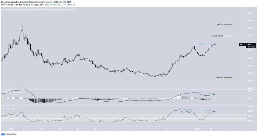 SponsoredZarówno MACD jak i RSI wygenerowały niedźwiedzią dywergencję, a BTCD zbliża się do oporu na 47%.