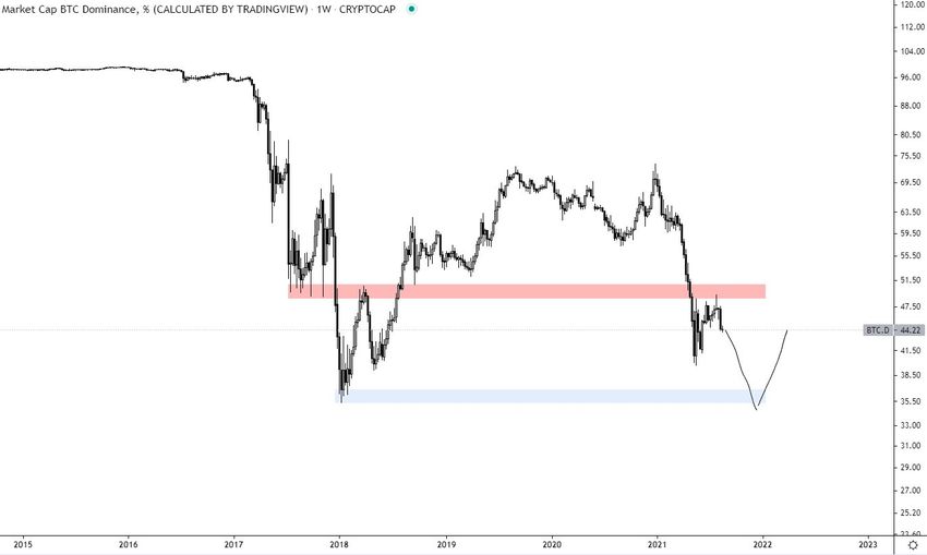 Kontynuacja średnioterminowego wzrostu ceny Bitcoina może w rzeczywistości spowodować spadek dominacji BTC do nowego ATL.