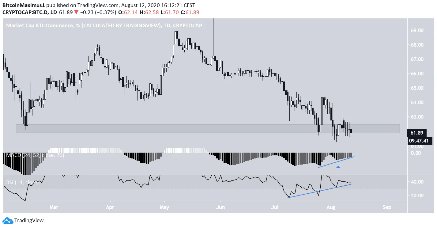 Dlatego też prawdopodobne jest, że obszar wsparcia utrzyma się, a BTCD zacznie się piąć w górę.