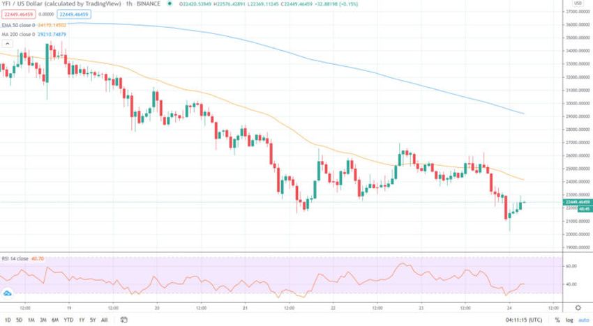 Jego natywny token YFI nie uciekł ze szponów niedźwiedzi podczas masowej wyprzedaży na rynku kryptowalut w tym tygodniu. W ciągu ostatnich 12 godzin YFI stracił 15%, spadając z powrotem do 22 500 USD.
