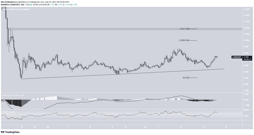 LUNA rosła wraz z rosnącą linią wsparcia od 23 maja. 20 lipca utworzyła drugie wyższe minimum.