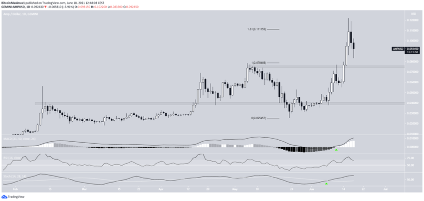 AMP rósł, ponieważ 23 maja osiągnął najniższy poziom 0,023 USD. Chociaż początkowo został odrzucony przez obszar oporu 0,076 USD, w końcu udało mu się wybić.