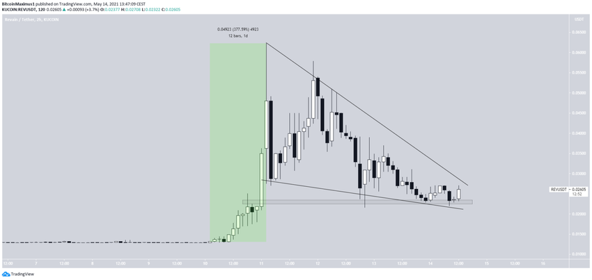 Jeśli REV się wybije, następny najbliższy obszar oporu będzie wynosił 0,047 USD.