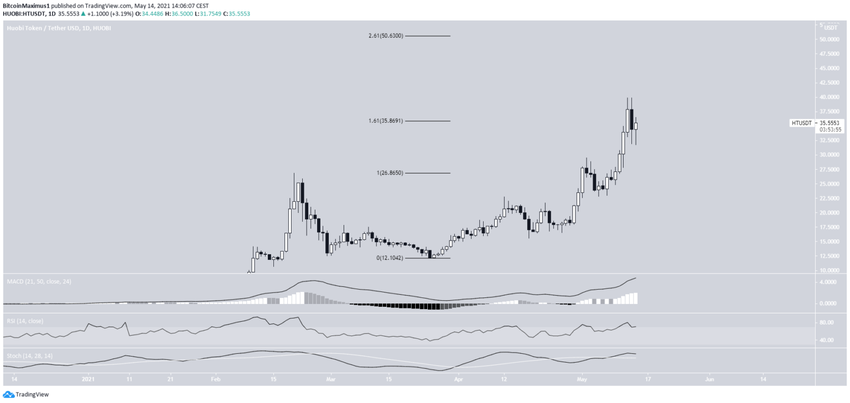 HT porusza się w górę od 25 marca. 2 maja udało mu się przebić poprzedni opór na poziomie 27 USD. Rósł do 12 maja, kiedy osiągnął nowe ATH na poziomie 34,99 USD.
