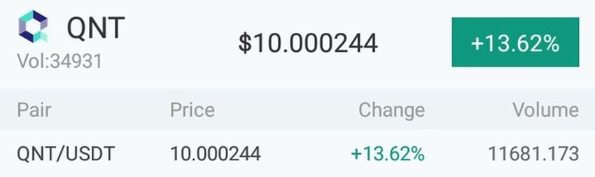 Kryptowalutowy trader @BCmaximalist opublikował na Twitterze obraz, który pokazuje 13-procentowy wzrost ceny QNT, która ostatecznie przekroczyła 10 USD.