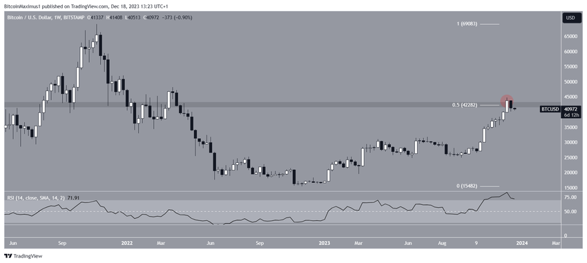 Analiza techniczna tygodniowego przedziału czasowego pokazuje, że cena Bitcoina gwałtownie wzrosła od października. Bitcoin osiągnął nowy roczny szczyt na poziomie 44 730 USD podczas ruchu wzrostowego w zeszłym tygodniu.