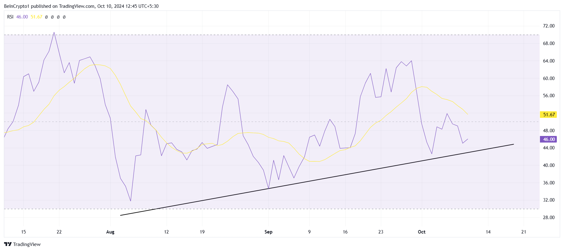 Na poziomie makro, momentum SOL wspierają bycze wskaźniki techniczne. Wskaźnik siły względnej (RSI) to jeden z takich wskaźników, który daje sygnały byczego momentu.