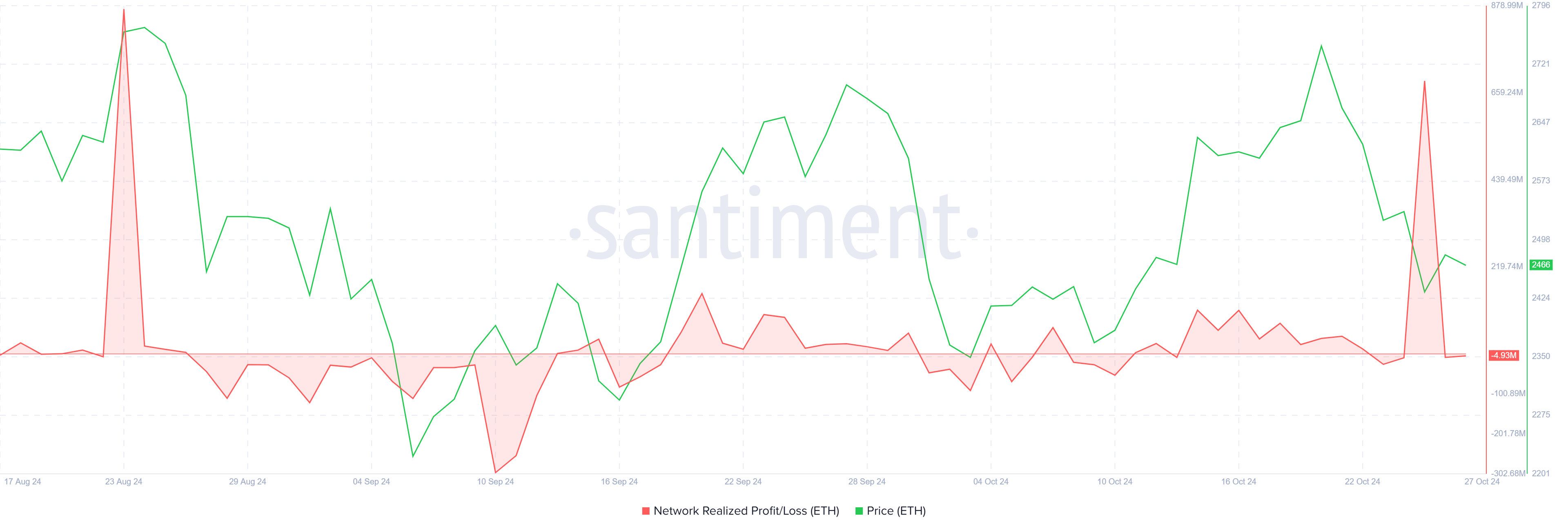 Ethereum niedawno odnotowało duży poziom realizacji zysków, osiągając najwyższe wartości od dwóch miesięcy. Ten wzrost wskazuje, że wielu posiadaczy ETH zdecydowało się zrealizować zyski, co przyczyniło się do tego, że aktualnie wzrost Ethereum zatrzymuje się. Jednak zwiększona sprzedaż pokrywa się z ogólnym spadkiem na rynku. Odzwierciedla defensywne działania inwestorów mających na celu zabezpieczenie zysków w obliczu ewentualnych spadków.