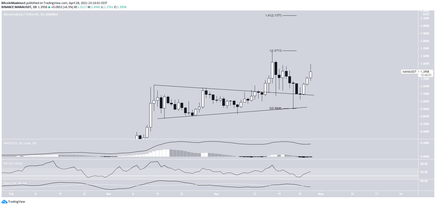 W dniu 15 kwietnia MANA wybiła się z symetrycznego trójkąta. Dwa dni później osiągnęła nowe ATH na poziomie 1,67 USD.