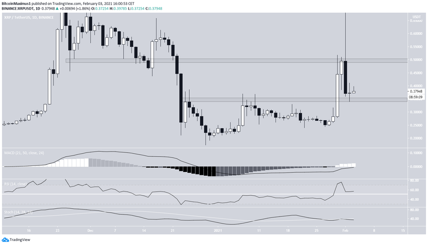 XRP zainicjowało gwałtowny ruch w górę w dniu 2 lutego, ale zostało natychmiast odrzucone i nie udało mu się dokonać zamknięcia powyżej obszaru długoterminowego oporu.