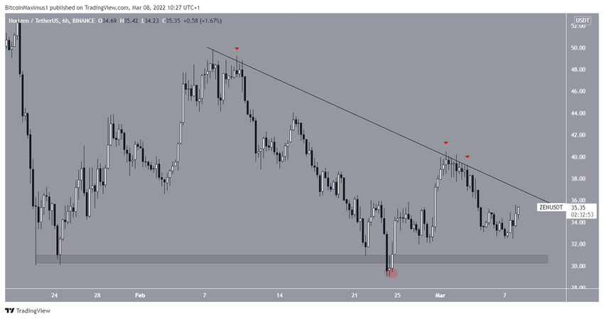 Ponadto ZEN na krótki czas zszedł poniżej horyzontalnego wsparcia na poziomie 30,50 USD (czerwone kółko), po czym ponownie je odzyskał.
