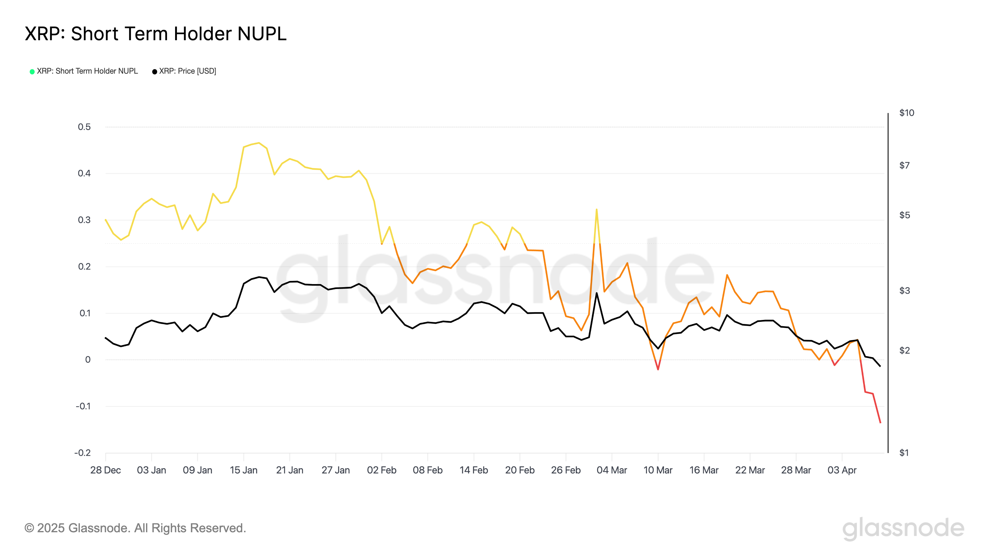 Krótkoterminowi posiadacze to inwestorzy, którzy trzymają swoje aktywa przez mniej niż 155 dni. Ta grupa posiadaczy XRP doświadcza kapitulacji, gdy zaczynają sprzedawać swoje aktywa ze stratą, często z powodu paniki lub wyczerpania. W momencie publikacji, STH-NUPL dla XRP jest na najniższym poziomie w tym roku, wynoszącym -0,13.