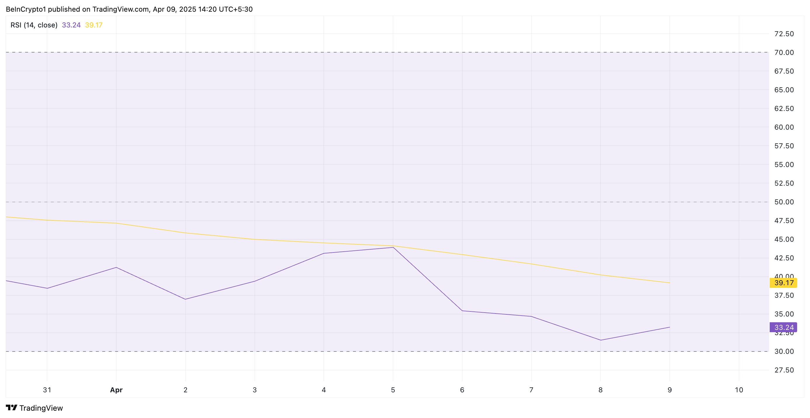 SponsoredWskaźnik RSI mierzy warunki rynkowe aktywa, czy jest ono wykupione czy wyprzedane. Zakres wynosi od 0 do 100. Wartości powyżej 70 sugerują, że aktywo jest wykupione i może nastąpić spadek ceny. Natomiast wartości poniżej 30 wskazują, że aktywo znajduje się na poziomie wyprzedania i może nastąpić odbicie.