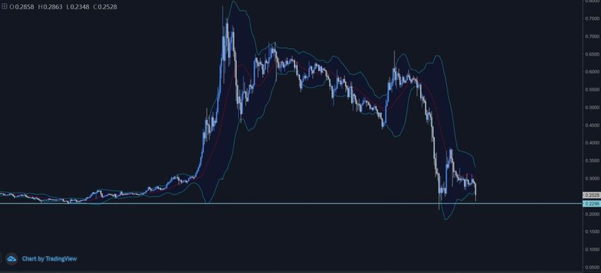 Sponsored SponsoredDwugodzinny wykres pokazuje kolejne załamanie, tym razem z niewielkiego obszaru wsparcia na 0,27 USD. Na wykresie dwugodzinnym nie ma również zwyżkowych znaków odwrócenia.