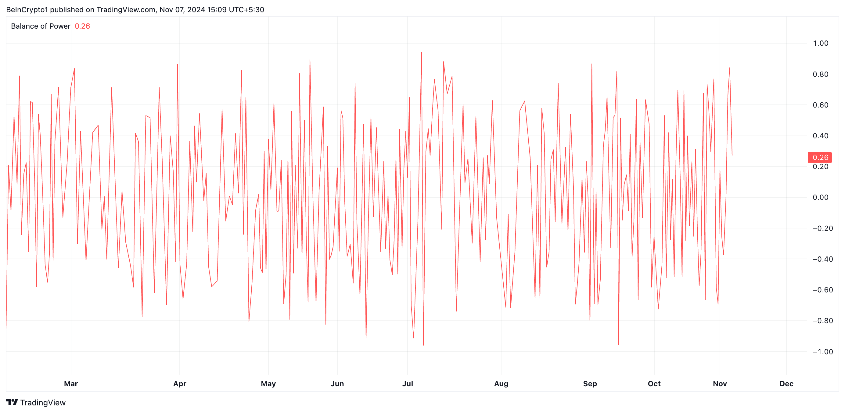 Ponadto, jego pozytywny wskaźnik równowagi sił (BoP) wskazuje na byczy nastrój, który obecnie panuje w XRP. Ten wskaźnik, który mierzy siłę kupujących w stosunku do sprzedających na rynku, wynosi w chwili obecnej 0,36. Pozytywny BoP oznacza, że kupujący kontrolują rynek i starają się utrzymać wzrostowy ruch cenowy.