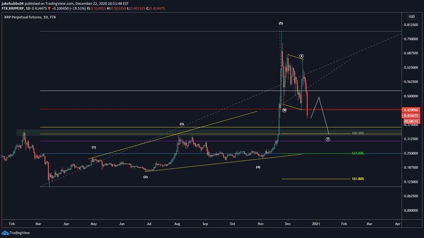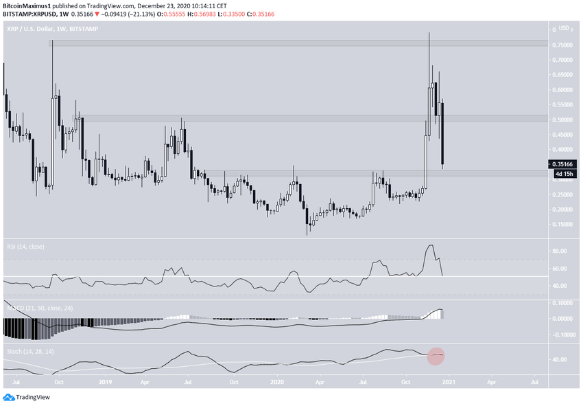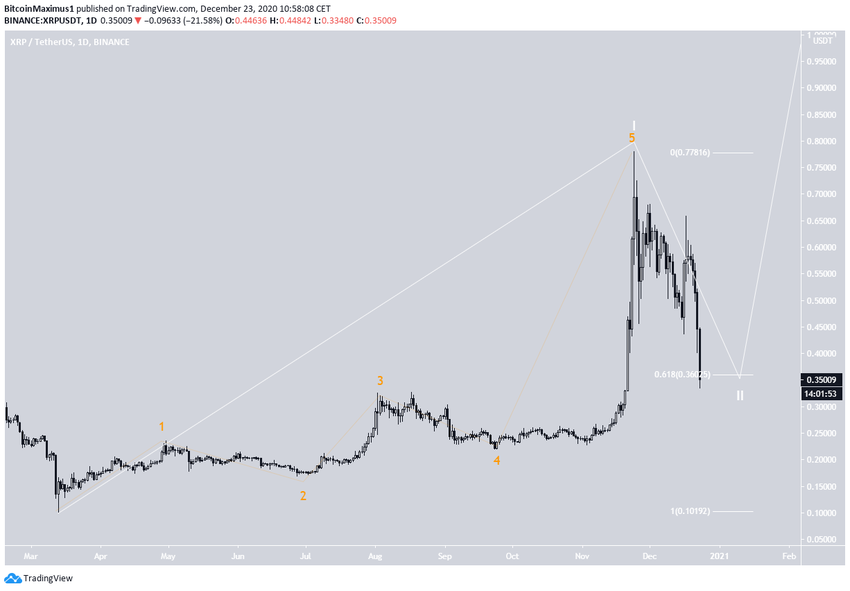 XRP spadł o prawie 50% od momentu osiągnięcia maksymalnego poziomu w 2020 roku na 0,79 USD w dniu 24 listopada.
