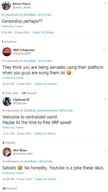Oczywiście tego typu akcja nie mogła się obyć bez mocnej odpowiedzi społeczności. Pojawiły się ironiczne wpisy, że YT przeszedł ze skrajności w skrajność: najpierw nie robił nic, by przeciwdziałać podszywaczom i oszustom, a teraz postanowił zablokować wszystkich, łącznie z ludźmi z Ripple’a.