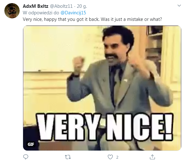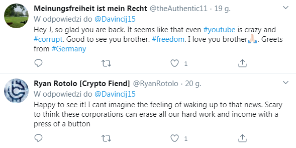 Davincij15 twierdzi, że fakt odzyskania kanału zawdzięcza wyłącznie ogromnemu wsparciu, z jakim spotkał się od krypto-społeczności na Twitterze.