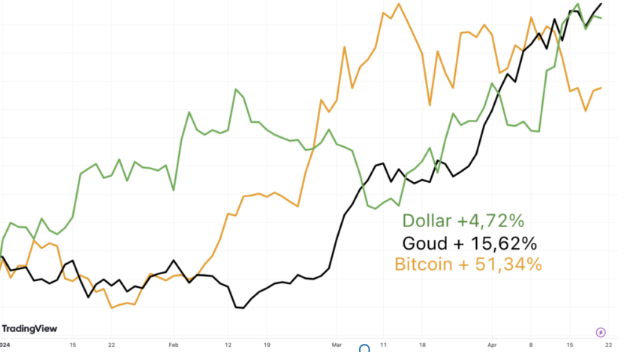 Na poniższym wykresie widzimy wyniki dolara, złota i bitcoina od 1 stycznia.