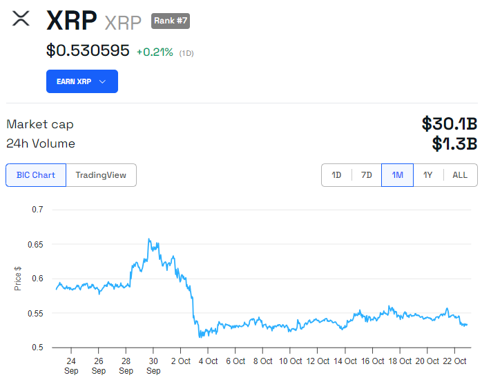 Dane z BeInCrypto pokazują, że token Ripple (XRP) wzrósł o skromne 0,21% po tej wiadomości, osiągając cenę 0,53 USD.