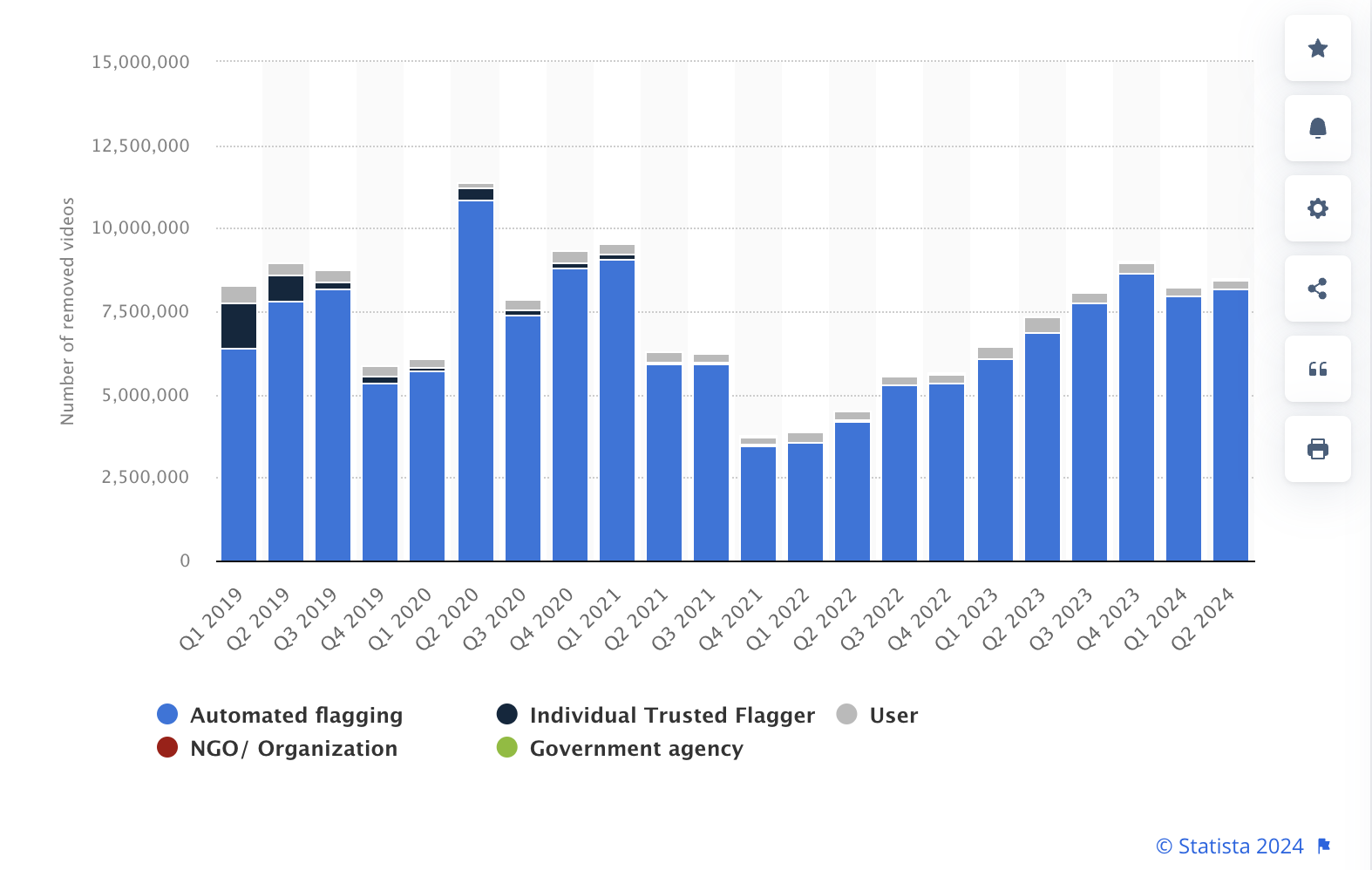 Pomijając wrażliwość polityczną, to samo dzieje się cały czas z codziennymi twórcami w znacznie mniej poważnych kontekstach. W drugim kwartale 2024 roku, automatyczny system flagowania YouTube usunął około 8,19 mln filmów, podczas gdy flagowanie generowane przez użytkowników usunęło tylko około 238 000 filmów.