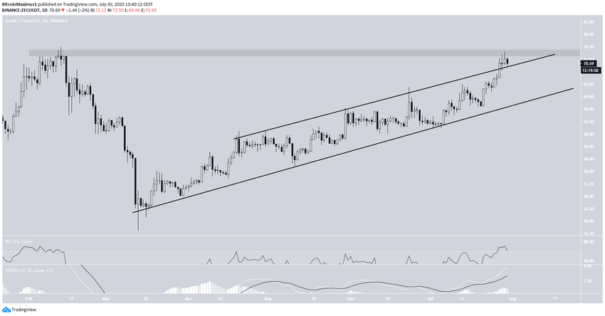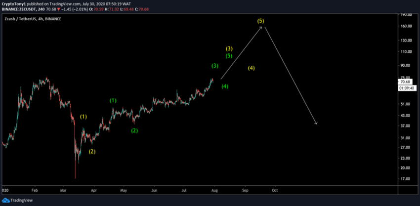 Kryptowalutowy trader @glowto1994 nakreślił wykres ZEC, który w nadchodzącym ruchu daje ostateczny cel na poziomie 150 USD.