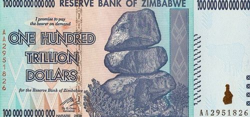 Zimbabwe jest w Polsce znane z bezprecedensowego wzrostu inflacji, która doprowadziła około 10 lat temu do powstania banknotów o wielkości 100 000 000 000 000 dolarów Zimbabwe! Przyczyną było początkowo wysiedlanie białych farmerów i oddawanie ich ziemi lokalnym mieszkańcom. Problem stał się jeszcze większy, gdy zaczęto na dużą skalę drukować nowe banknoty. Również dzisiaj kraj dręczony problemami monetarnymi – inflacja wyniosła około 540% w lutym