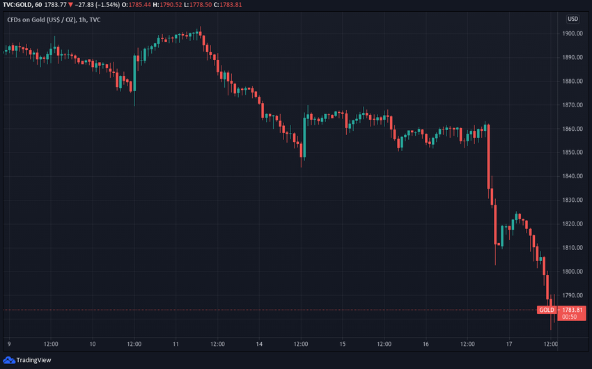 Powodem, dla którego złoto spadło poniżej poziomu 1800 USD jest fakt, że Rezerwa Federalna zasygnalizowała wcześniejsze niż oczekiwano podwyżki stóp procentowych. Większość z 11 urzędników Fed przewiduje co najmniej dwie podwyżki stóp procentowych w 2023 roku, mimo że zobowiązali się oni do utrzymania dotychczasowej polityki wspierającej ożywienie na rynku pracy.