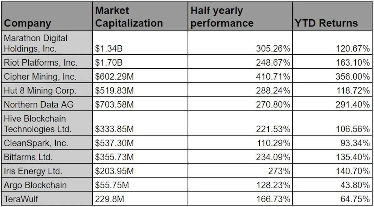Na przykład zakup akcji Cipher Mining pierwszego stycznia przyniósłby do dziś ponad 350 procent zysku. Spójrz na poniższą tabelę:
