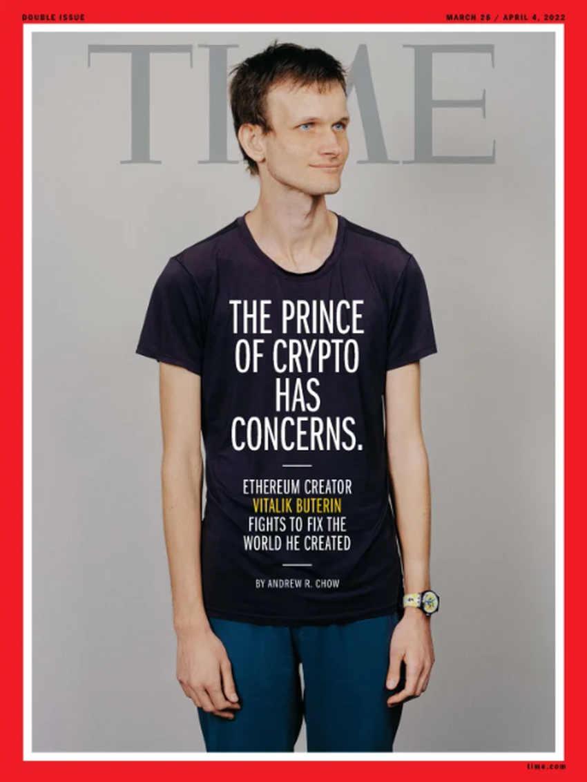 Wszystkie zasługi Buterina nie pozostały niezauważone. Na przykład już w 2017 roku znalazł się w pierwszej dziesiątce listy Fortune “40 najbardziej wpływowych młodych ludzi poniżej 40 roku życia”. Nieco później Vitalik znalazł się na top liście Forbesa “30 Under 30” w kategorii “Finanse”. A ostatnio, w marcu 2022 roku, Vitalik Buterin został twarzą okładki magazynu TIME, która po raz pierwszy pojawiła się w wersji NFT.